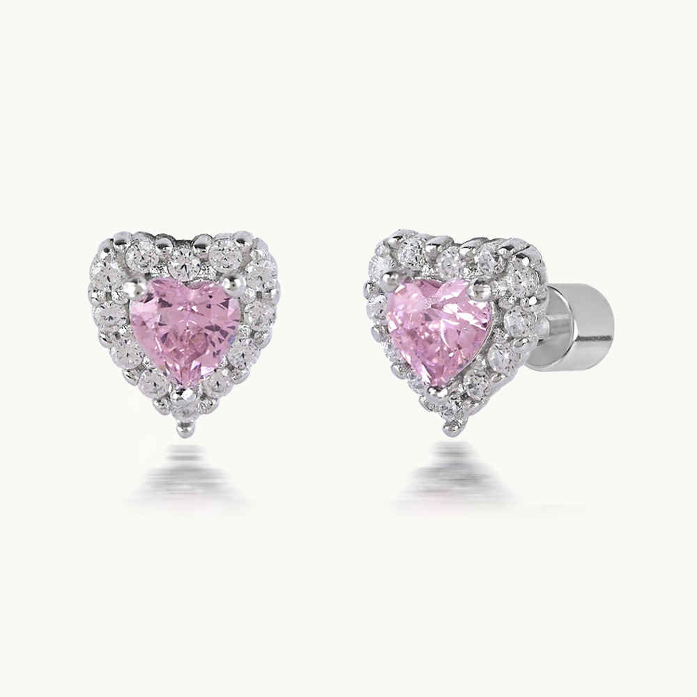 Aretes en forma de corazón con circones. Elaborados en plata 925.