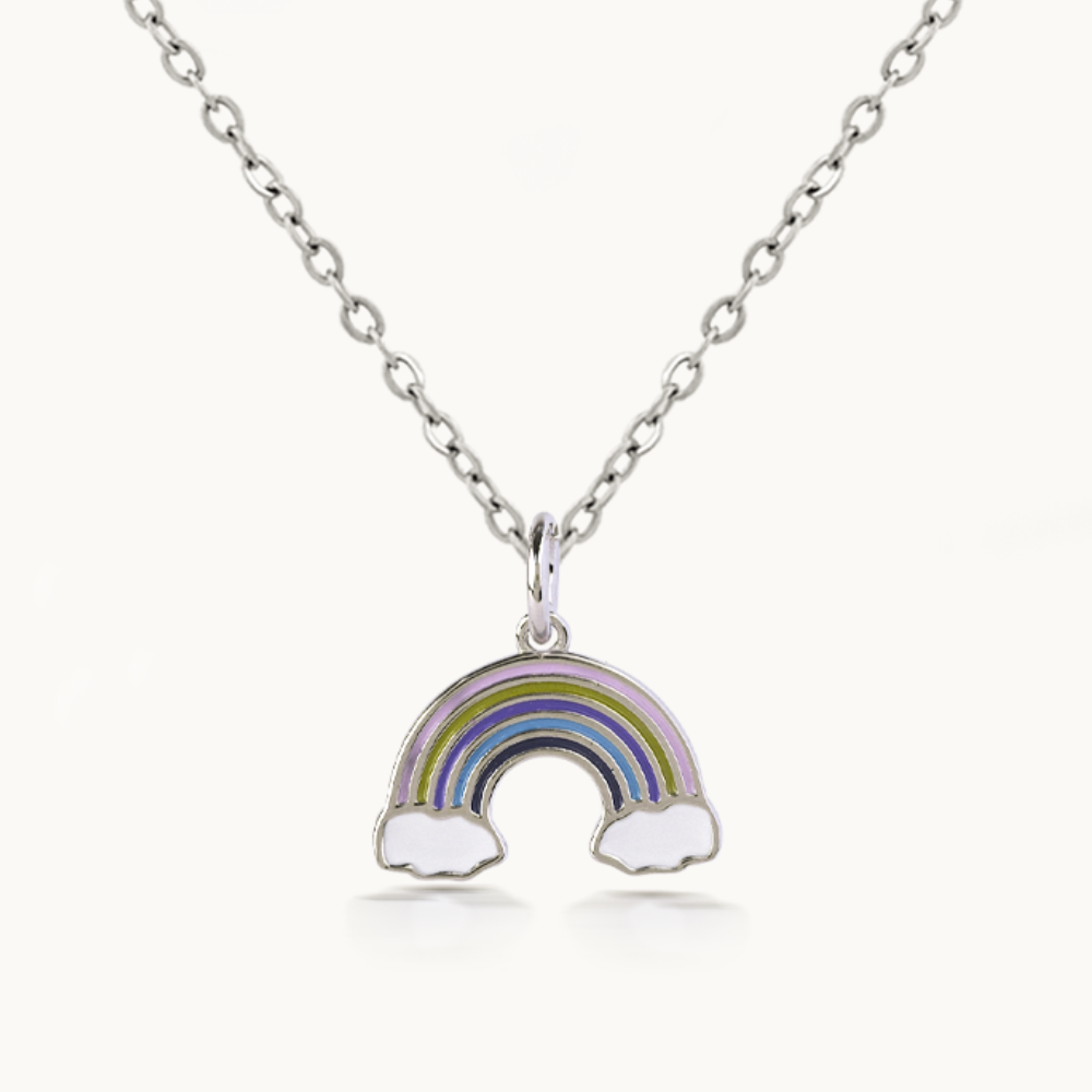 Collar con dije de arcoíris y nubes. Elaborado en plata 925.