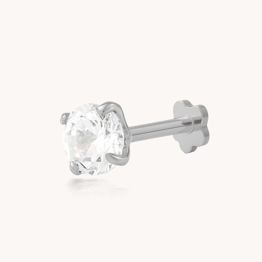 Piercing con diseño de punto de luz, elaborado en titanio.